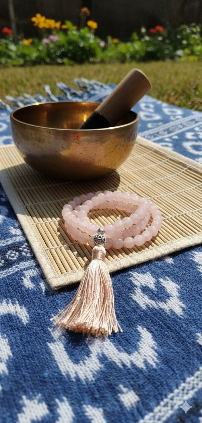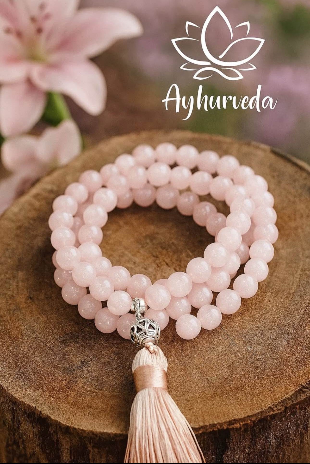 🧘♀️ Rosario Tibetano de cuarzo rosa de 108 cuentas - Hechos con piedras naturales 🧘♂️